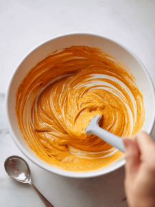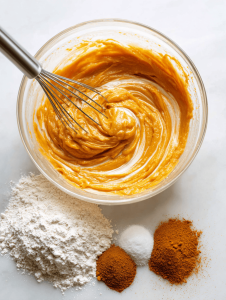 - Add the pumpkin puree and vanilla extract to the creamed mixture. Mix until well combined, resulting in a smooth, slightly thick batter.