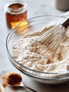 - In a separate bowl, whisk together flour, cinnamon, ginger, nutmeg, and salt to evenly distribute the spices.