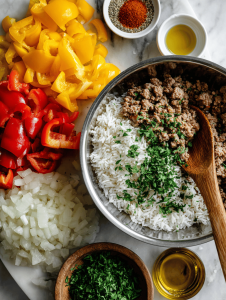 These stuffed peppers feature vibrant, crisp-tender bell peppers filled with a savory mixture of rice, spicy sausage, and melted smoky cheese. Roasted until bubbly and golden, they boast a comforting yet rebellious flavor profile perfect for chilly nights or Halloween celebrations. The dish combines textures of tender peppers and gooey cheese with a spicy kick and smoky undertones.