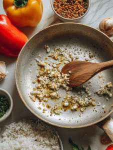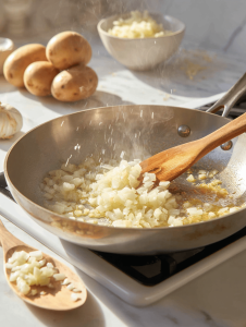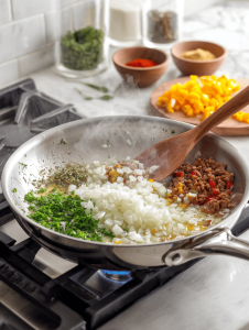3. In a skillet over medium heat, sauté the diced onion and minced garlic until fragrant and translucent, about 3 minutes. The aroma should be warm and inviting.