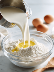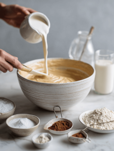 5. Gradually pour in the buttermilk while mixing at low speed. You’ll see the batter become slightly loosened and creamy.