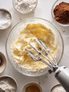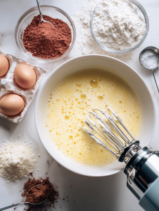 • Electric Mixer: Whips eggs and sugar to a fluffy, light texture.