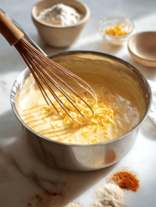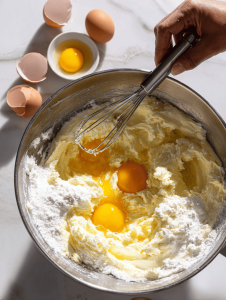 • The batter should be smooth and shiny, not grainy, before pouring into the pan.