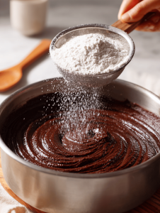 2. Sift together the flour, cocoa powder, baking soda, and salt in a large bowl. This ensures a smooth, lump-free batter and helps develop a tender crumb.