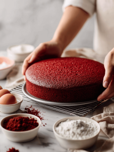 The Process of Creating a Dark, Fluffy Blood-Red Velvet Cake
