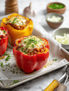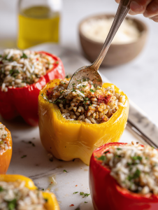 • Peppers tipping over during baking.? Ensure peppers are upright in the dish—use crumpled foil if needed.